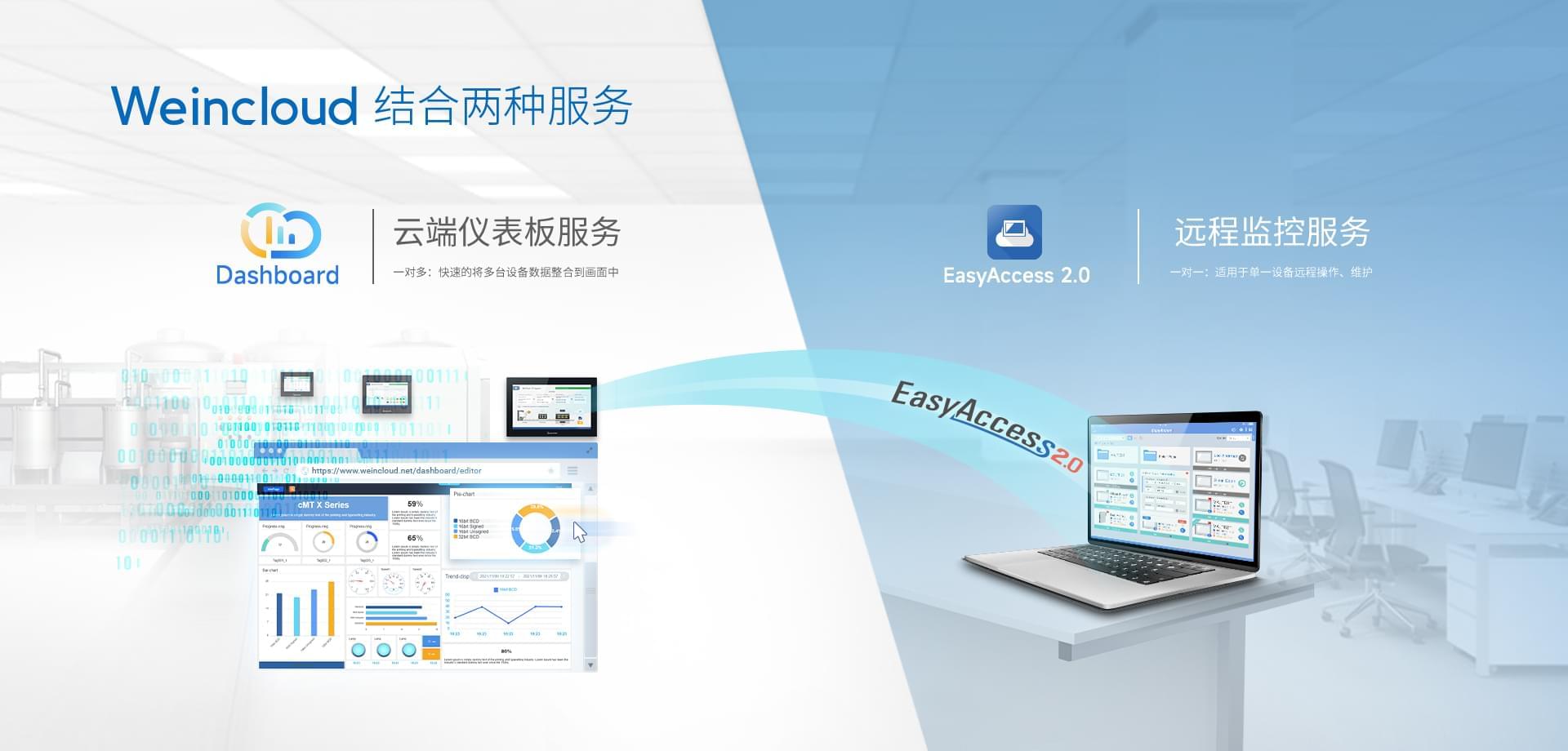 Weincloud 集結(jié)EasyAccess2.0遠程監(jiān)控服務及Dashboard云端儀表服務,將設(shè)備資料數(shù)據(jù)上云并以視覺化呈現(xiàn),協(xié)助管理者實時掌控現(xiàn)場產(chǎn)線狀態(tài)。